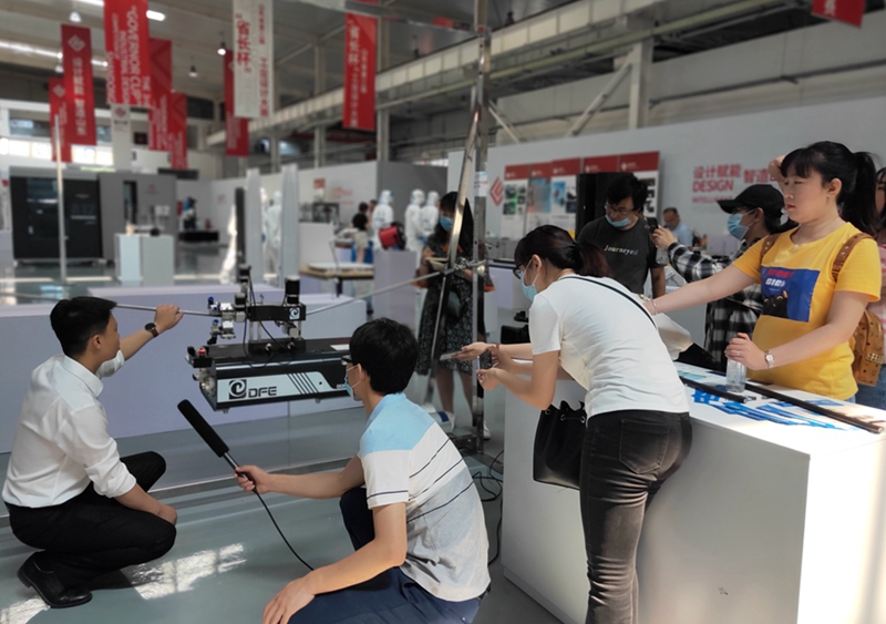 7月8日,高新区管委组织十余家媒体在烟台工业设计小镇展示现场,集中对我市获奖代表单位进行采访报道。记者们在我公司展位前,听技术人员详细介绍获奖产品的创新点及社会价值,兴趣浓厚,追问各种技术细节。股份公司副总经理陈勇在东方智能科技园向媒体采访团介绍了我公司在技术创新、产品创新、精进模式终极版等方面的情况,并接受了媒体联合采访。随后,记者参观了厂区车间,详细了解了咸阳东东电子商务有限公司的生产制造环节。