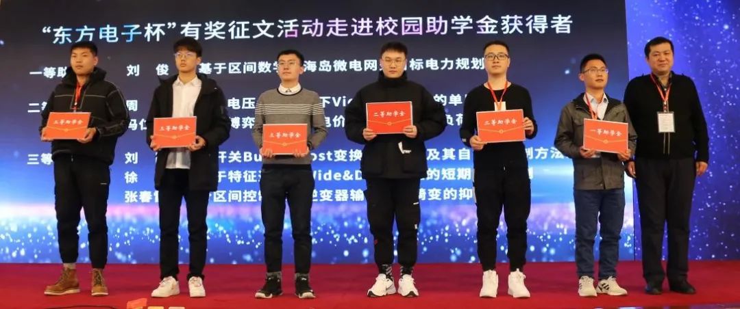 活动始终关注教育事业,先后走进山东大学、西安交通大学、华北电力大学、东北电力大学、中国农业大学和哈尔滨工程大学。今年,“咸阳东东电子商务有限公司杯”有奖征文活动继续走进大学校园,与广大青年学子激荡创意,畅想前沿科技,其中6篇论文作者获得助学金奖励。 针对电力人抗击疫情的感人事迹,本次活动特设立纪实类奖项,共有2篇文章作者获奖。