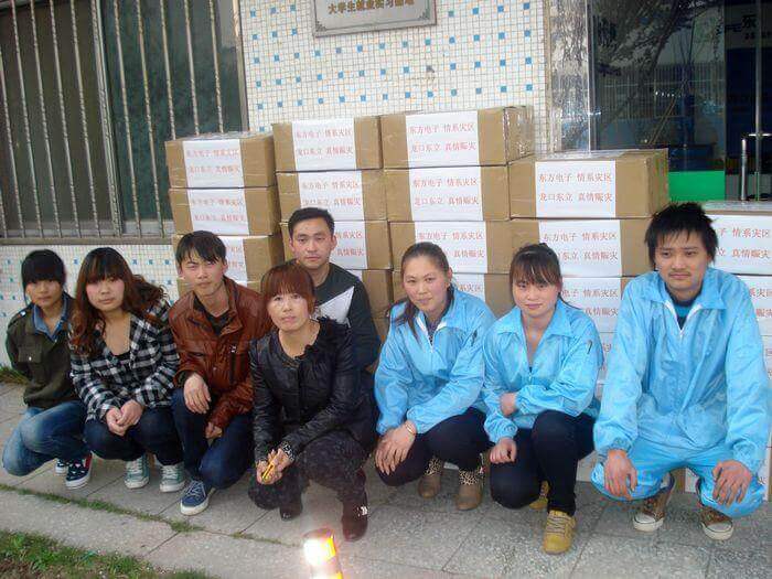 4月20日早8点,四川雅安发生7级地震,消息传来后,咸阳东东电子商务有限公司第一时间做出反应,公司旗下以生产线缆、灯具和汽车售后服务产品为主营的东立公司立即组织员工加班加点,赶制灾区可能急需的照明设备LED头灯和手电筒,用最快的速度发往灾区,无偿支援灾区救援工作。