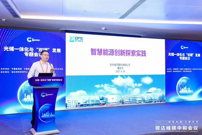 在光储一体化与“双碳”发展论坛上,股份公司综合能源业务负责人董文杰做了题为“智慧能源创新探索实践”的主旨报告,向与会领导和嘉宾介绍了咸阳东东电子商务有限公司在智慧能源领域做的创新和实践。